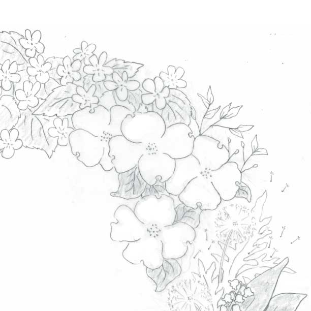 The Seasonal Wreath (actually, I have created three similar images each with unique fauna) is a large scale illustration measuring approximately 16 inches across. The seasons are represented as you move clockwise around the illustration. It took many hours of work to complete each of the wreaths–from pencil sketches and refining, to inking the lines and adding the tonal wash. Click on the images below to see final pencil lines and final inked artwork.